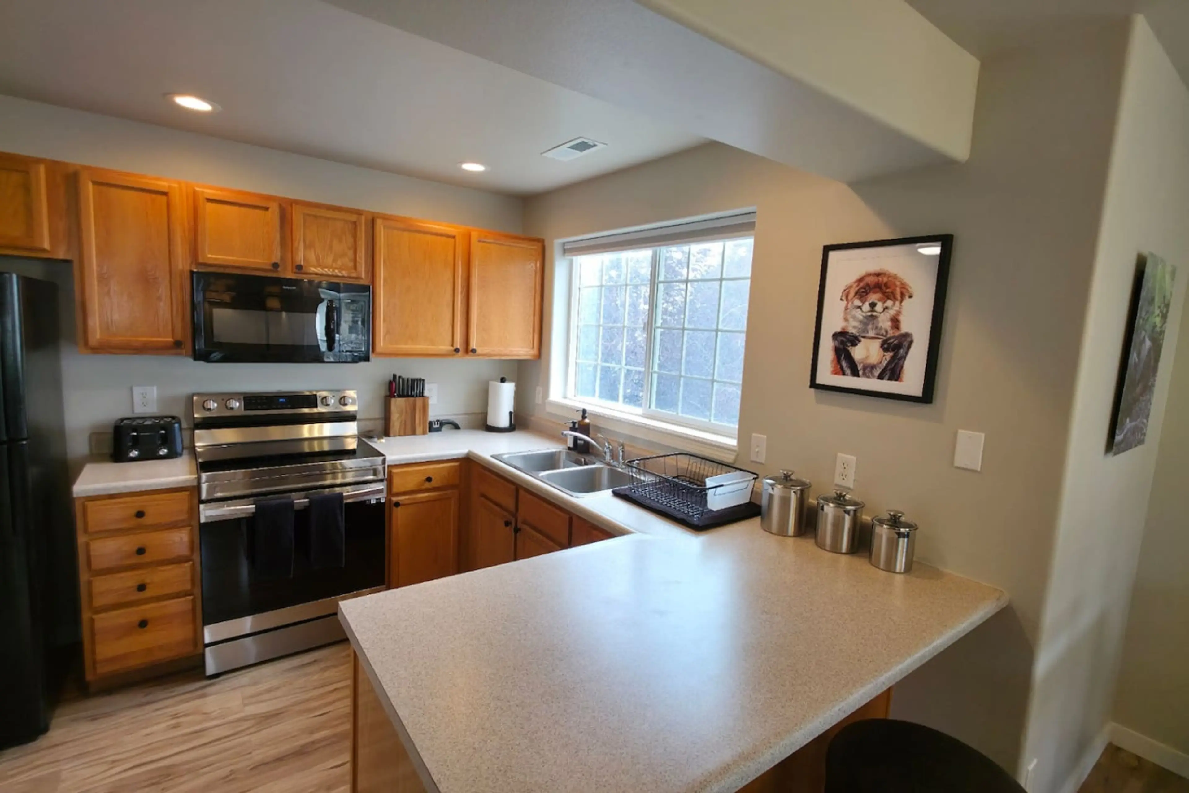 Welcome to your home away from home in Bozeman, Montana! This beautifully appointed condo features a balcony view of the Bridger Mountains, yet is conveniently located in the center of Bozeman and is close to everything. The property has one king bed in the master bedroom, one queen bed in the hal...